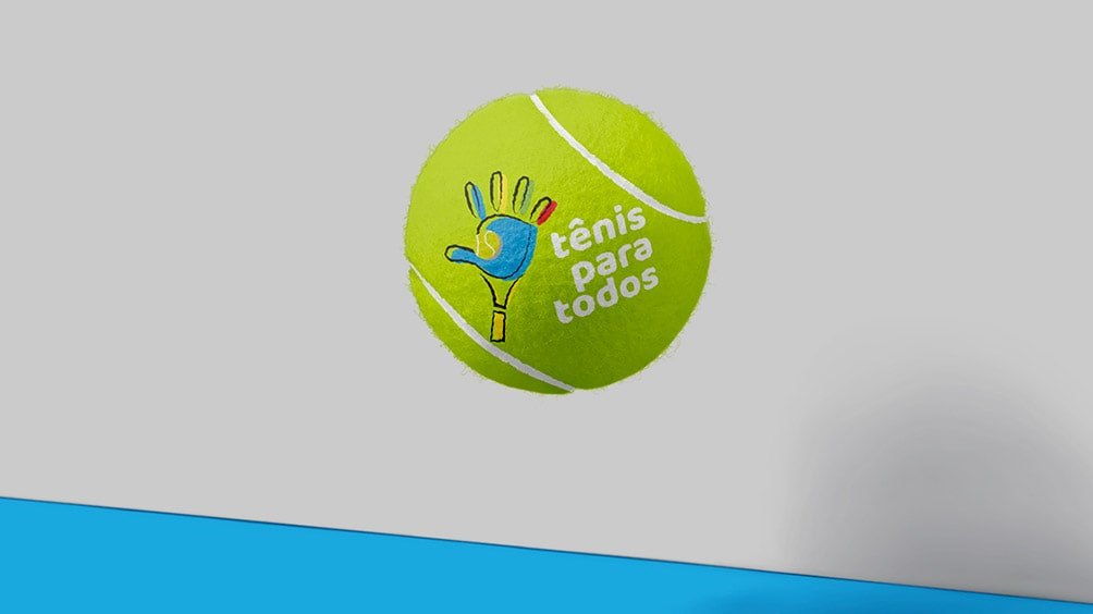 Criamos a identidade visual do Projeto Tênis Para Todos. O conceito da marca é o de simplificar a raquete de tênis
