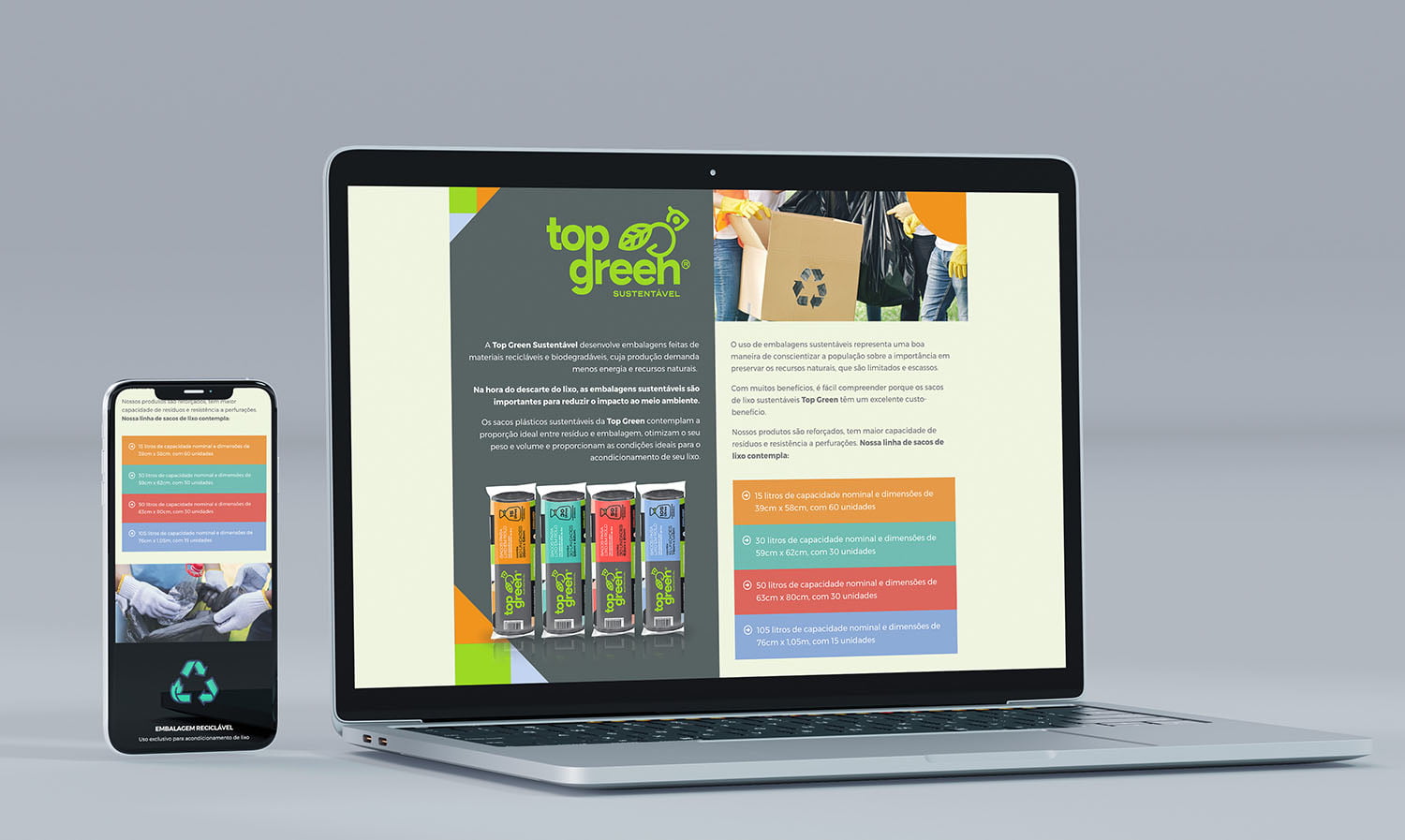 A Top Green Sustentável desenvolve embalagens feitas de materiais recicláveis e biodegradáveis, cuja produção demanda menos energia e recursos naturais.