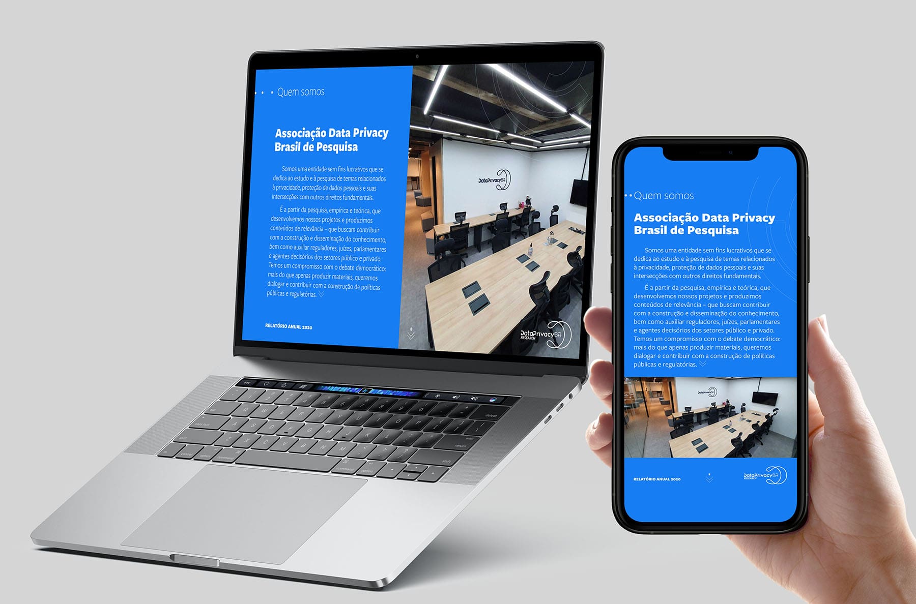 Criamos o design do Relatório Anual da Associação Data Privacy Brasil de Pesquisa. O projeto foi feito em dois formatos,