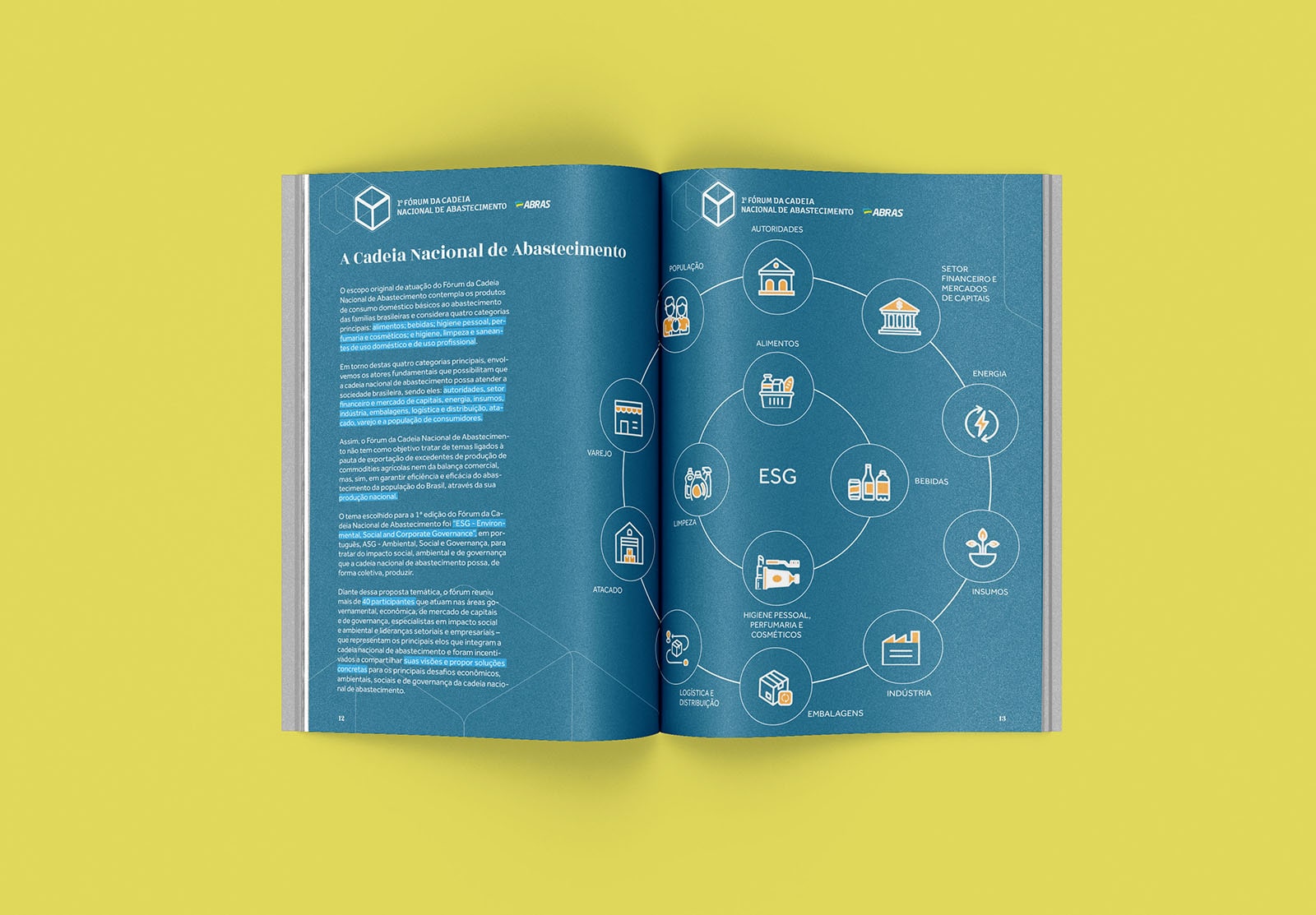 Desenvolvemos o projeto gráfico e a diagramação do relatório do 1.º Fórum da Cadeia Nacional de Abastecimento, da Associação Brasileira