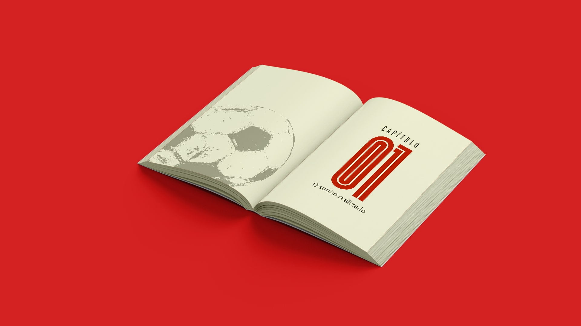 Para as aberturas de capítulos foram usadas imagens em alto contraste e uma família tipográfica que lembra os números nas camisas dos jogadores.