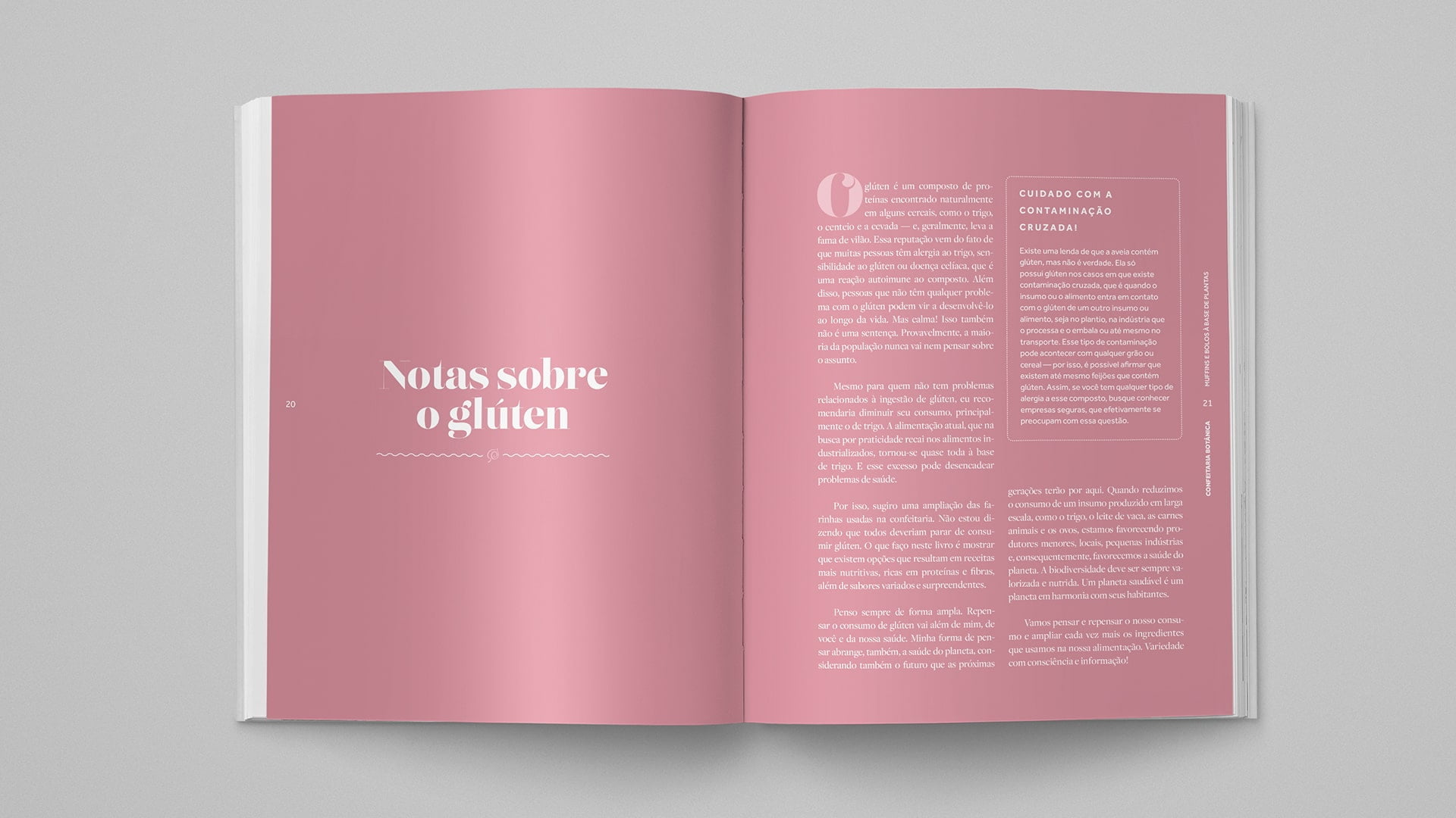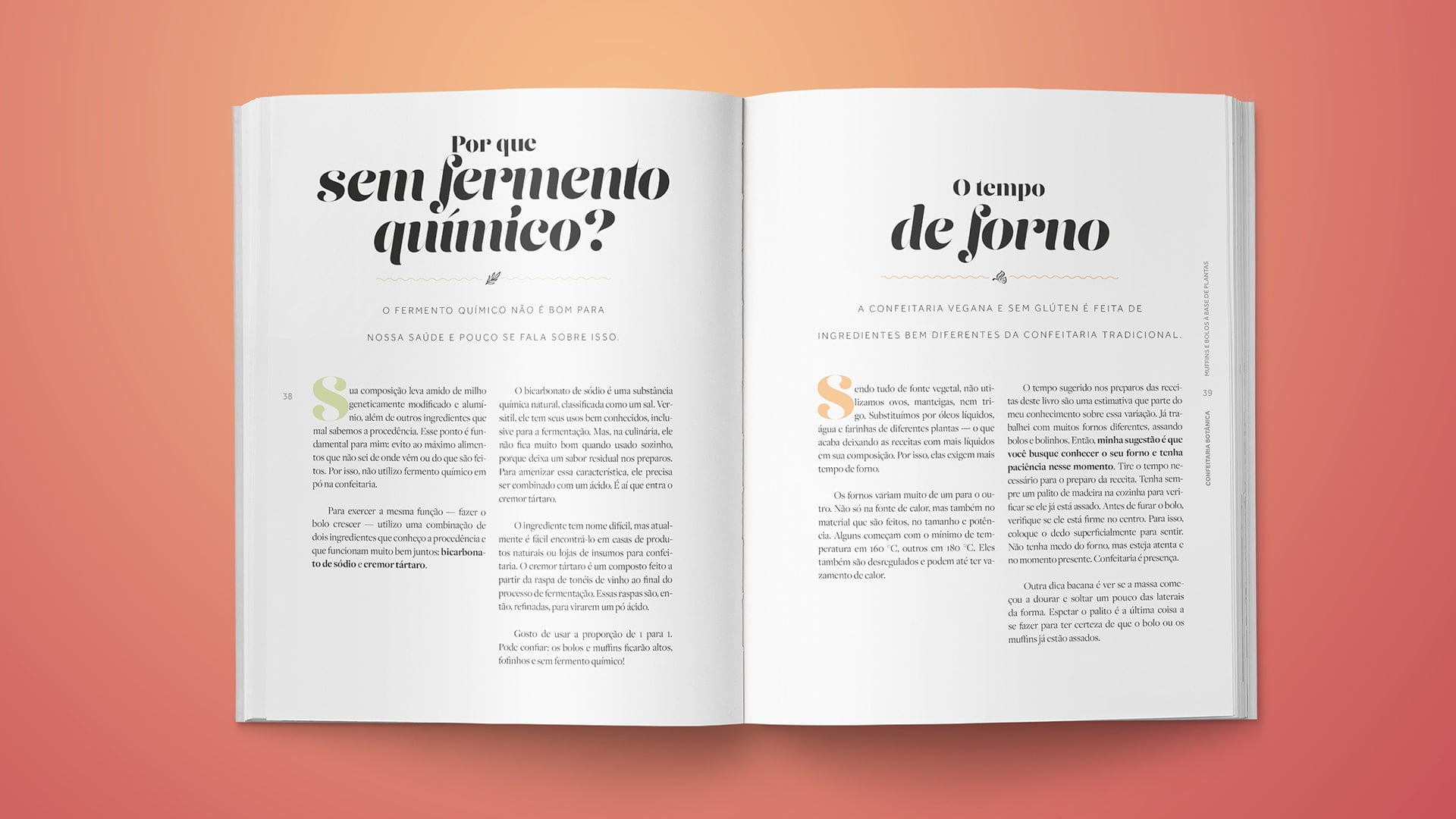 O design do livro dá destaque as fotos e traz um conjunto tipográfico delicado com um toque quase caligráfico. Linhas orgânicas bem suaves, ícones desenhados à mão e cores em tons cítricos/pastel ajudam a organizar o conteúdo e níveis de leitura distintos. O livro, com quase duzentas páginas, é uma viagem saborosa por receitas e ingredientes harmonicamente diagramados. Uma obra para ser degustada aos bocados.